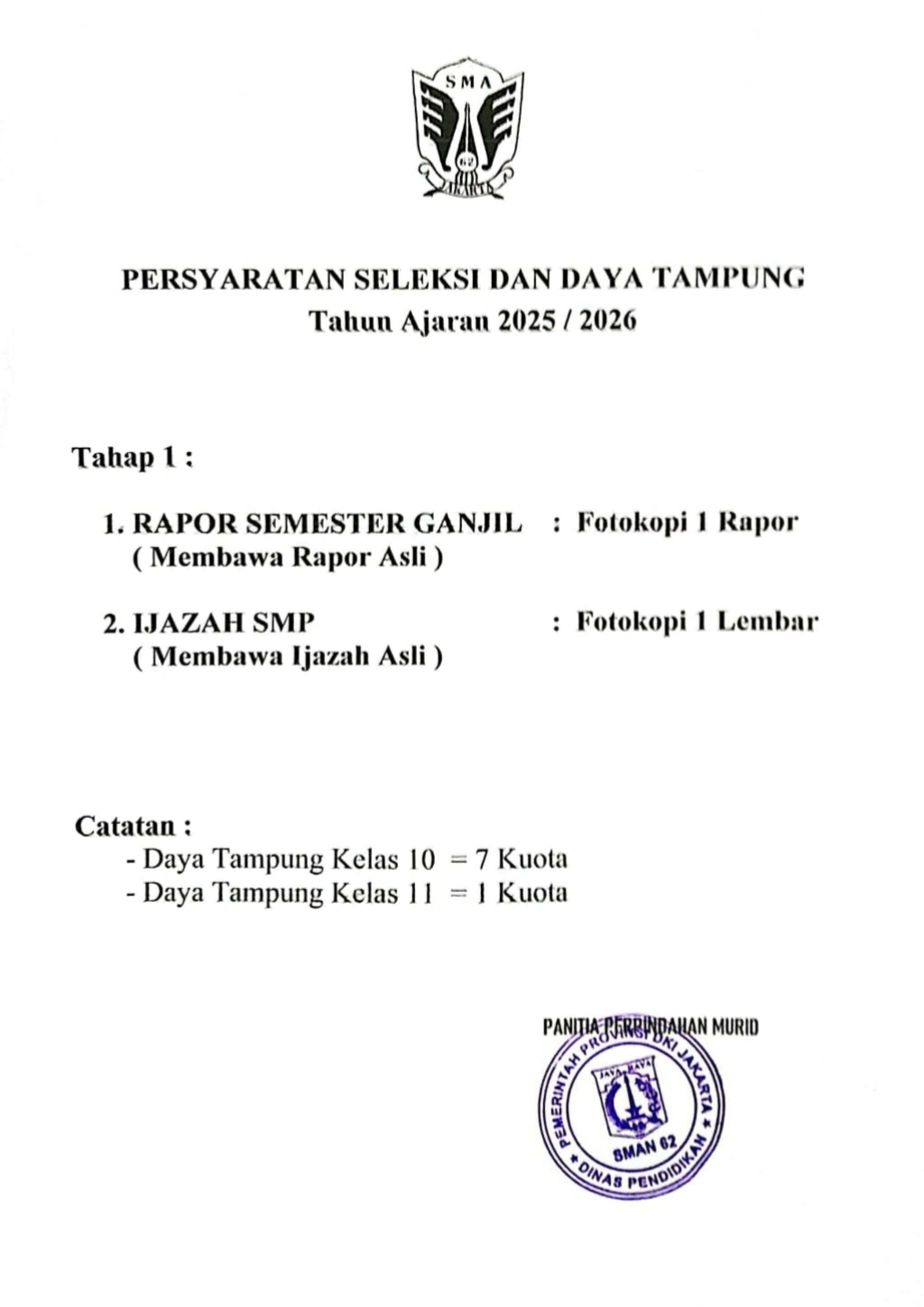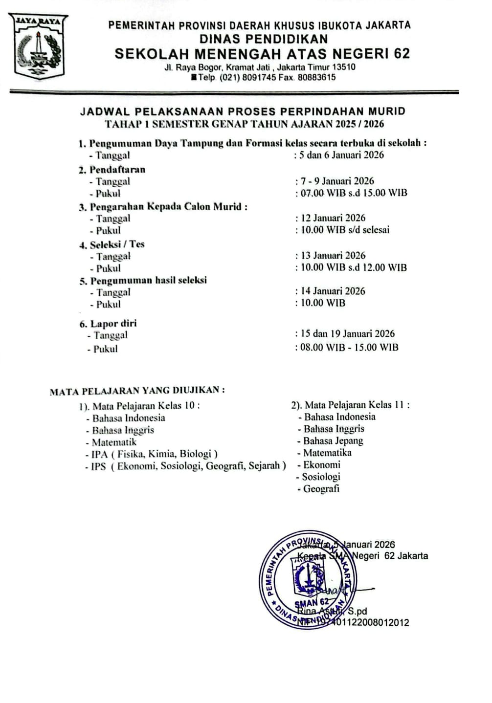 PENGUMUMAN MUTASI TAHAP 1 SMTR GENAP KELAS 10 & KELAS 11 T.P. 2025/2026